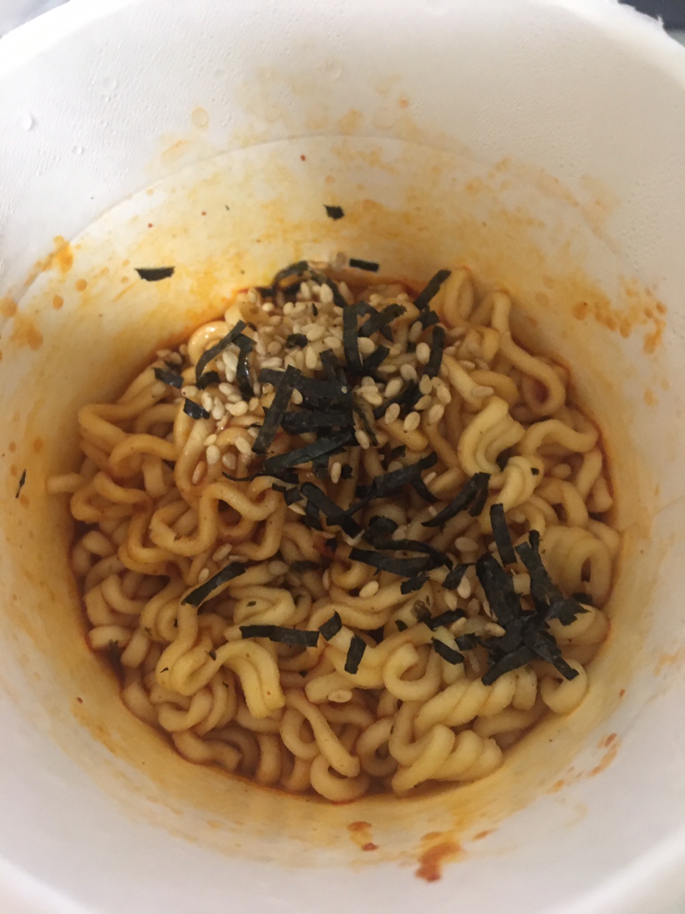 1. 물을 다 버리지 않고 면이 자작하게 잠길 만큼 물을 남기고 소스를 넣어준다. 이렇게 물을 많이 하면 훨씬 덜 맵다.