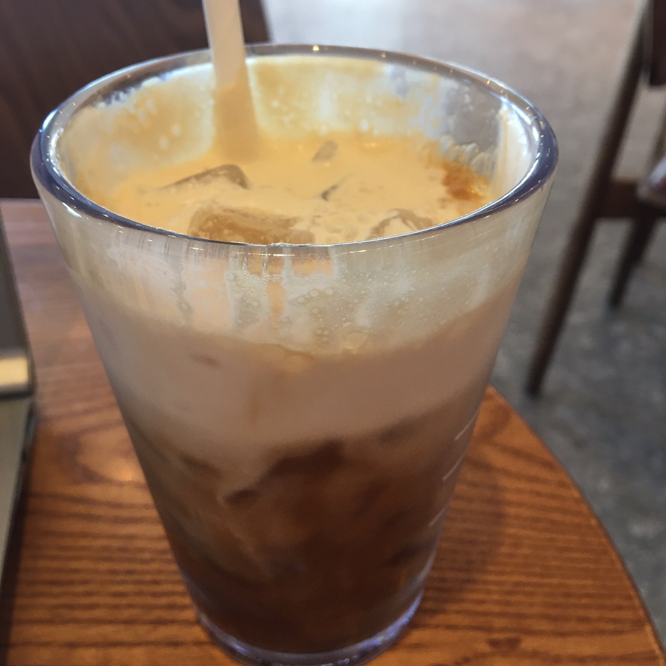 콜드브루 커피위에 씨솔트 카라멜 폼이 올라가 있는 커피에요