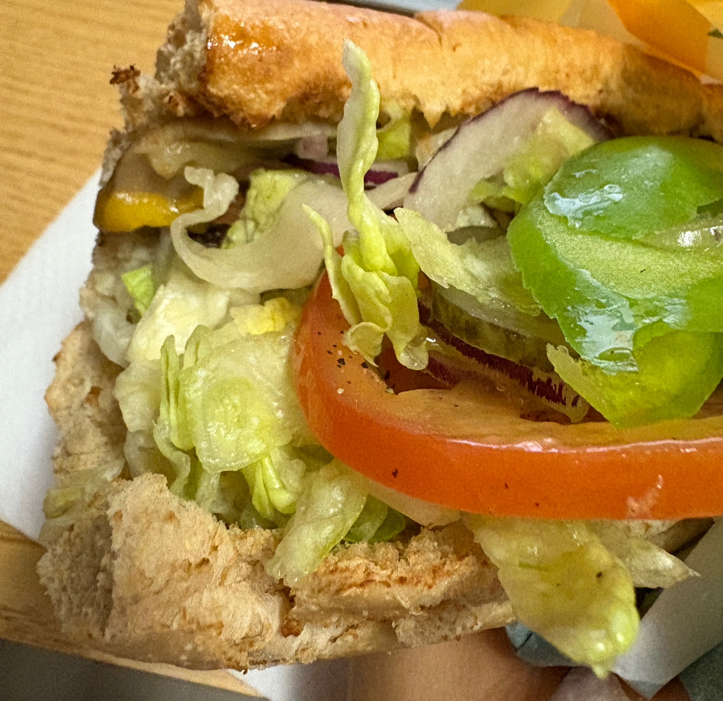 조합은 위트(토스팅o), 콰트로치즈, 야채 모두, 스위트 어니언, 후추 조합으로 먹었어요