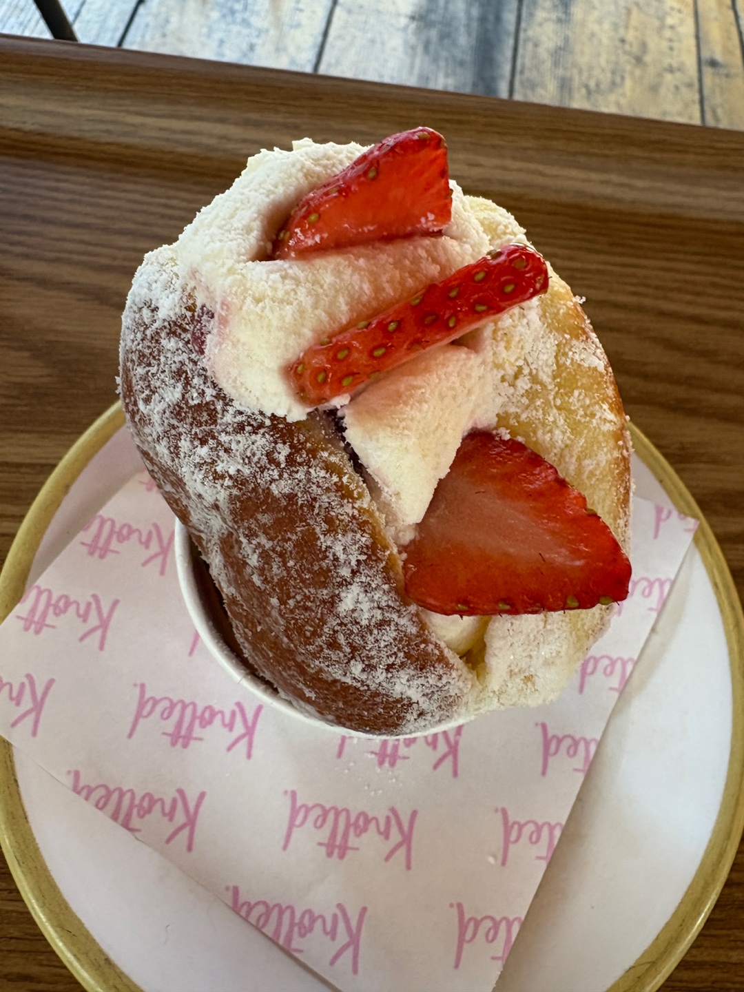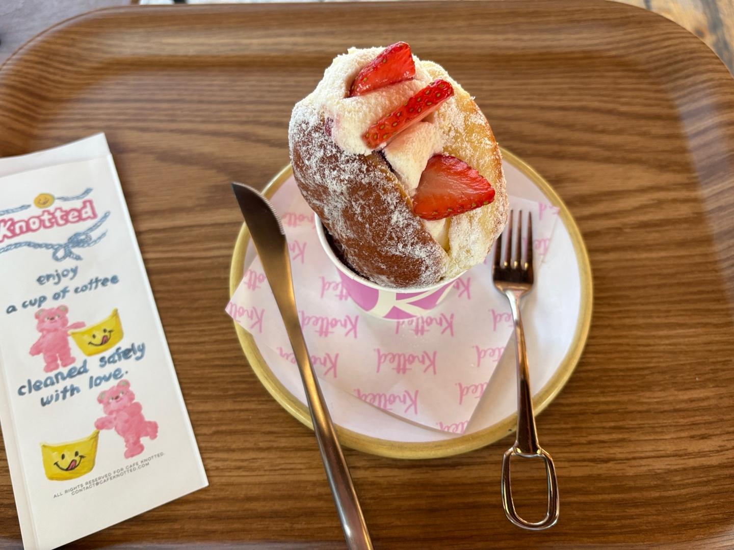 노티드 도넛 중에서 우유생크림 도넛을 제일 좋아하는데 생딸기가 올라간 우유크림도넛은 어떤 느낌일지 너무 궁금했어요