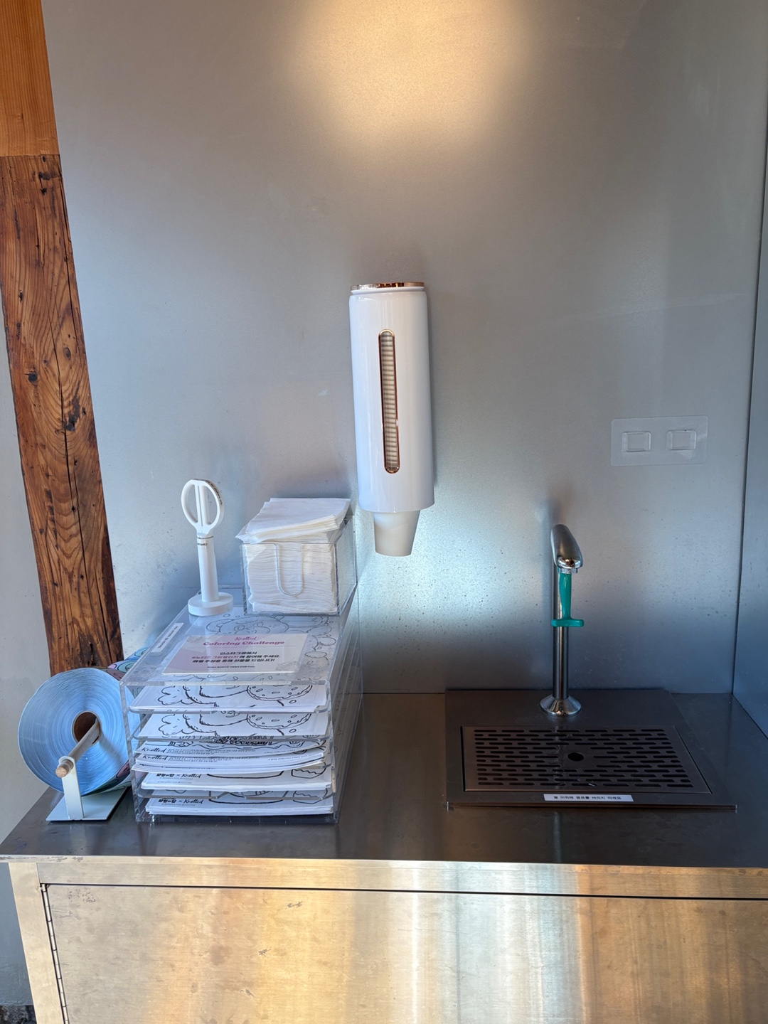 그리고 노티드 스마일 스티커와 그림 도안을 가져갈 수 있는 진열대도 있었고 식수대도 마련되어 있었어요
