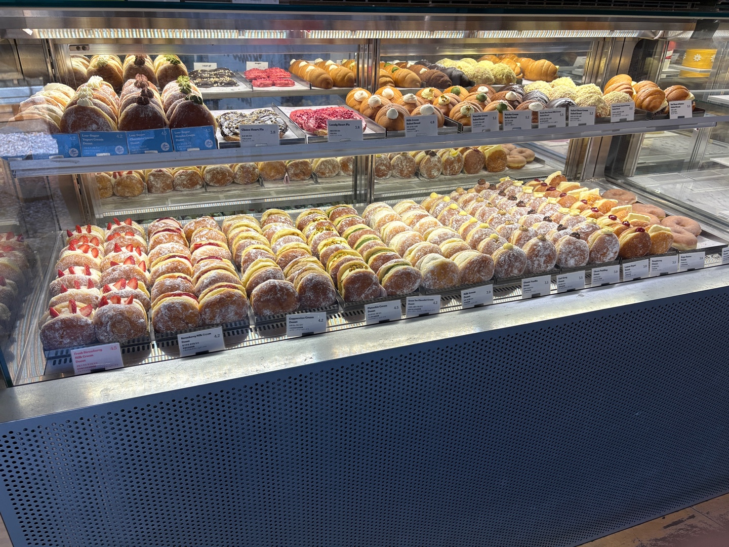 쫄깃하고 말랑한 빵의 식감, 부드럽고 고소한 우유 생크림, 딸기와 딸기잼의 달콤함과 상큼함, 슈가파우더의 달달함이 조화로웠고 행복감과 만족감을 주는 맛이었어요