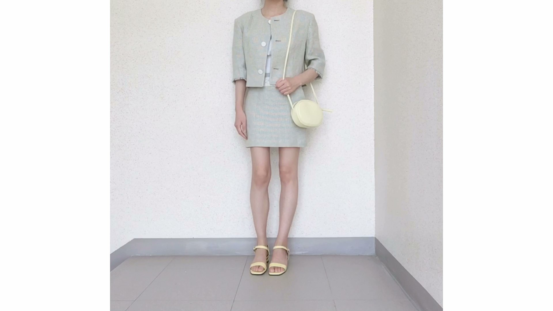 달리엔 Dalieen # Mini tweed jacket, Mini lace skirt [유튜버 새영 착용] 패션, 뷰티, 일상 유튜버 새영님의 영상에서 달리엔 트위드 셋업을 보고 반해서 구매한 제품이에요. 메로나같은 연두색감이 가장 맘에 들었어요. 트위드 원단은 톡톡해서 좋았어요. 자켓은 크롭한 기장감과 칠부 소매, 동그란 싸개단추가 있어서 귀엽고 깔끔한 디자인이고 어깨패드가 있어서 어깨각을 잘 살려줘서 좋았어요. 치마는 미니한 기장감에 레이스 디테일이 있어서 여성미를 더해주는 디자인이에요. 셋업으로 입으면 깔끔하고 여성스럽고 귀여운 분위기로 연출할 수 있어요. 자켓과 치마 따로따로 입어도 활용도가 높은 셋업이에요. 봄, 여름, 가을에 입기좋은 디자인과 원단인 예쁜 트위드 셋업이에요. 같이 착용한 아이..